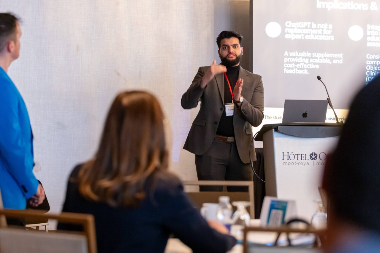 Later, Claude Julie Bourque, PhD, Associate Professor at the Faculty of Medicine at Université de Montréal, gave the closing plenary, “Beyond Boundaries: The Promise and Pitfalls of Interdisciplinarity in Healthcare Education Innovation and Research”. In it, she explored how interdisciplinary research teams come together to co-create research problems, questions, objectives and hypotheses, building a shared vision from diverse perspectives.