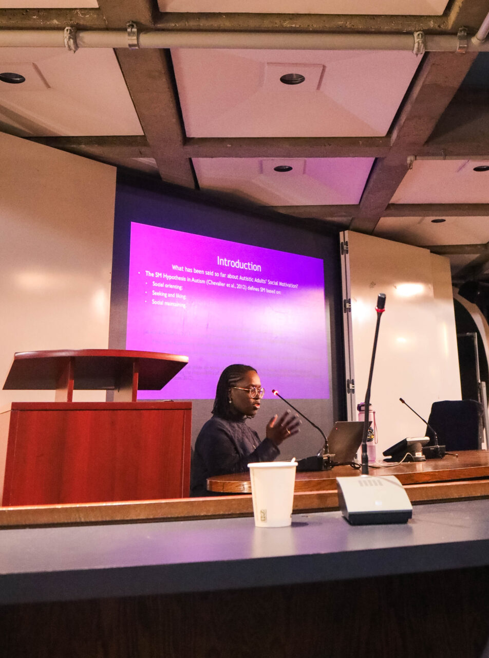 Dominique Louër, a fifth-year PhD candidate at the SCSD and finalist at the 2024 North America Three Minute Thesis (3MT) competition, presented a poster titled: Linguistic Markers of Cognitive and Motor Impairment in Parkinson’s Disease.