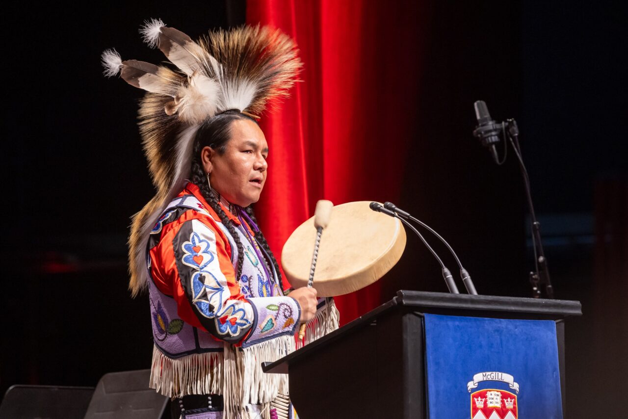 - Ouverture de la cérémonie, Rob Spade, gardien des savoirs anishinaabe Conseiller culturel autochtone, Bureau du vice-principal exécutif et vice-principal aux études, et professeur adjoint (enseignement), Département de recherche musicale, École de musique Schulich